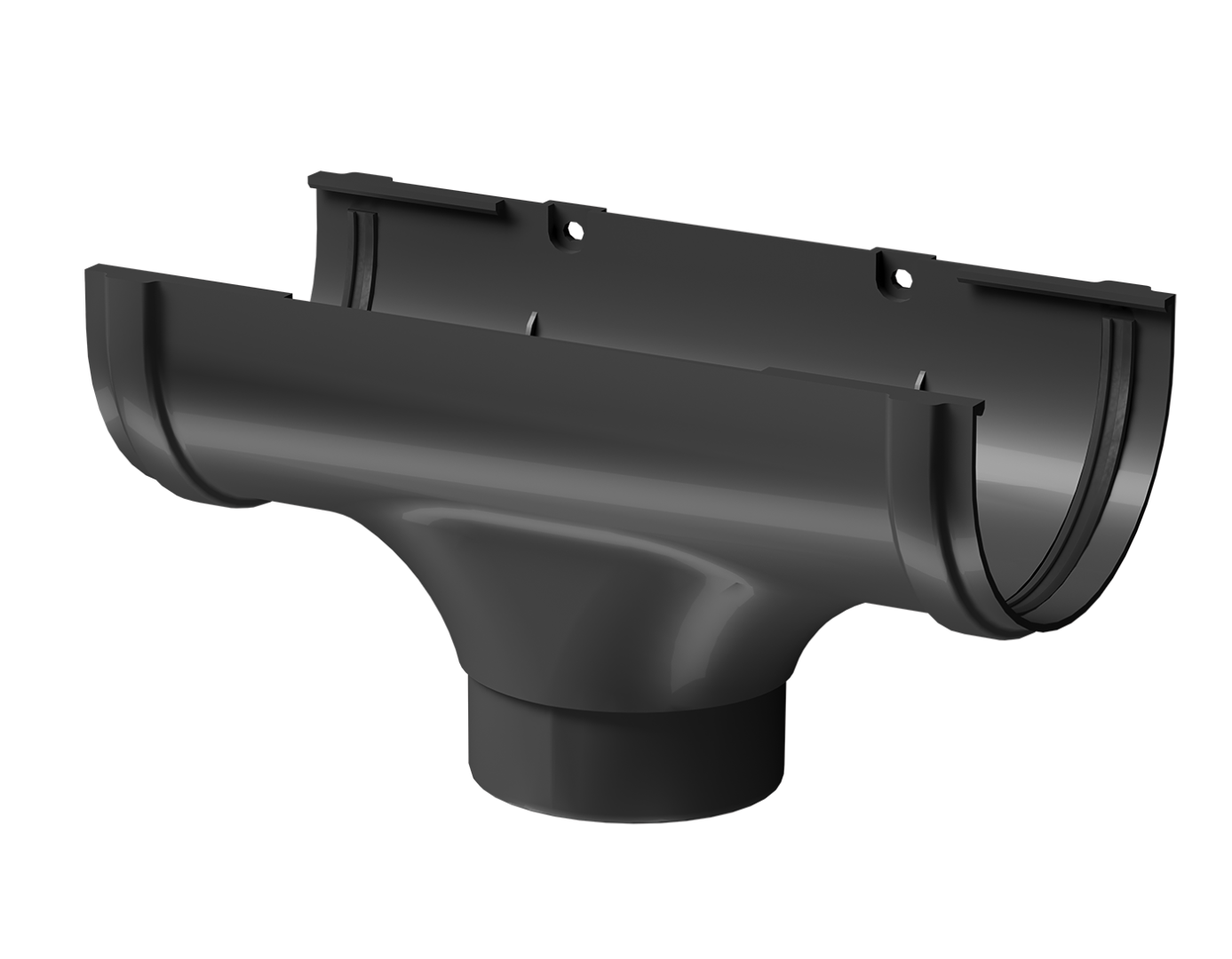 Воронка окрашена в цвет «Графит». Гарантия от производителя на сохранение изначального цвета составляет 7 лет. Водостоки такого оттенка будут гармонично смотреться с крышами и фасадами самых разных цветов. Спрашивайте продукцию Docke у официальных дилеров.