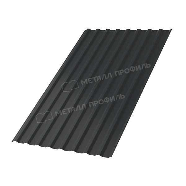 Профлист МЕТАЛЛ ПРОФИЛЬ МП-20x1100-R NormanMP (ПЭ-01-7016-0,5) часто используется для оформления кровли. Представляет собой лист оцинкованной стали с покрытием. Толщина стальной основы с оцинковкой и защитно-декоративным покрытием составляет 0.5 мм. После проката на специальном оборудовании сталь принимает волнообразный вид. Несущая способность профилированного листа на порядок выше плоского.
