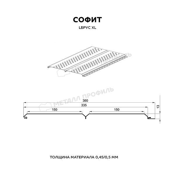 Софит Металл Профиль перфор. Lбрус-XL-14х335 (ПЭ-01-1014-0.45)