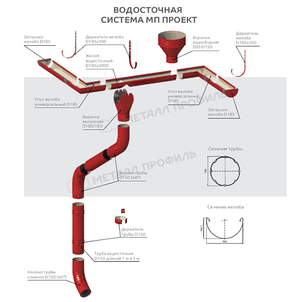 Описание товара: "Труба водосточная Металл Профиль ПРОЕКТ D150х1000 RAL 8017"